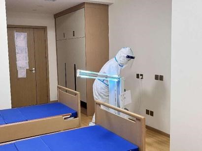 2、保潔做好防護進入發(fā)熱長者居室進行全面消毒和紫外線燈照射消毒。